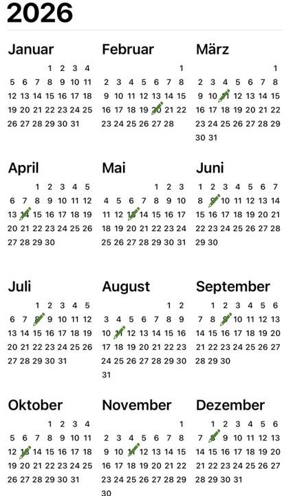 in den ungeraden Monaten (Jan, Mrz, Mai, Jul, Sept, Nov) jeden 2. Mittwoch